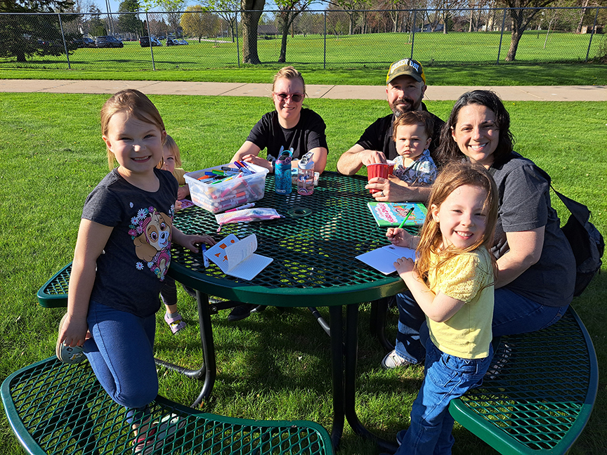 Families were first introduced to the project during fall Family Night, when students eagerly took home blank books to begin writing their own stories. By spring Family Night, the Little Library was installed, and families gathered outside to read, write, and share new creations together. One second grader summed up the excitement best, saying she was glad she knew where the library was so she could “come to write books even when [she is] in third grade next year.”