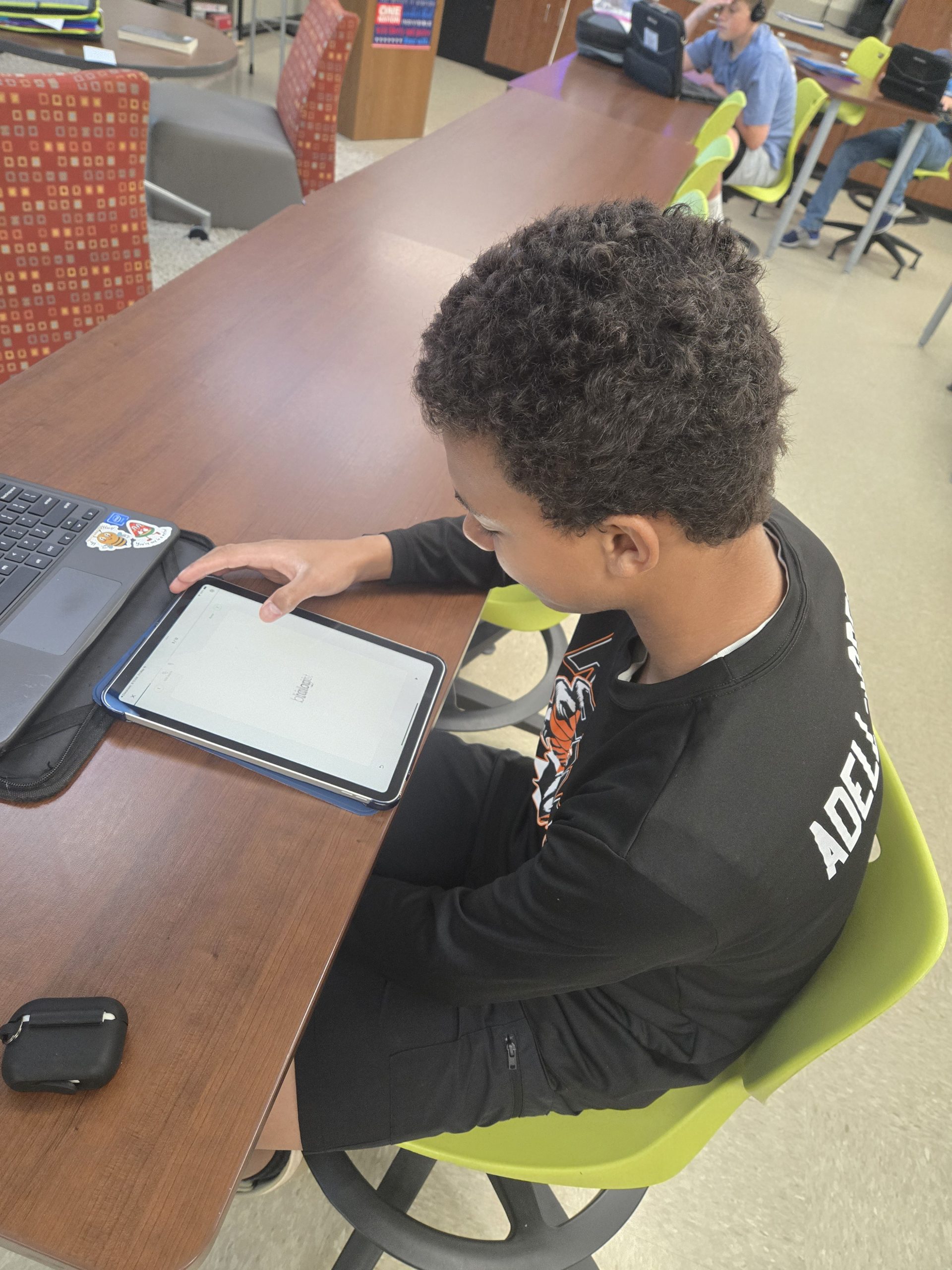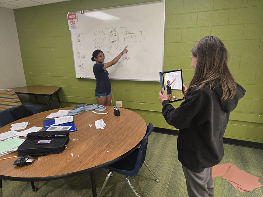 In social studies, iPads are used weekly for vocabulary practice, interactive review activities, and self-paced study through apps like Quizlet. Students are also creating original video projects—recording, editing, and sharing their work to demonstrate understanding while building digital literacy and communication skills.